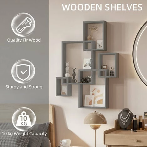 Not one, but five cubic shelves, all locked into one – to fix wherever you want. This season, display your favourite things in unique style across the home and office, thanks to HOMCOM. It combines differently-sized frames to show off differently-sized pieces. Made from fir wood, this wall-mounted shelf is tough, with a natural varnish finish to allow your displayed items to do the talking. Set up horizontally or vertically – the choice is up to you.