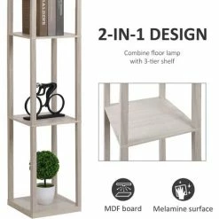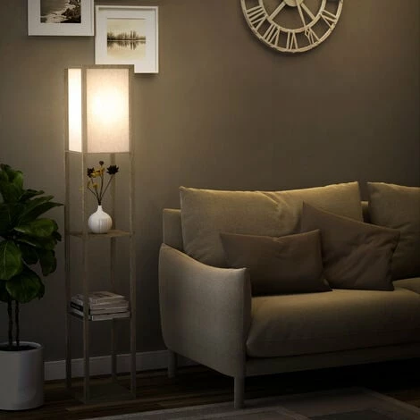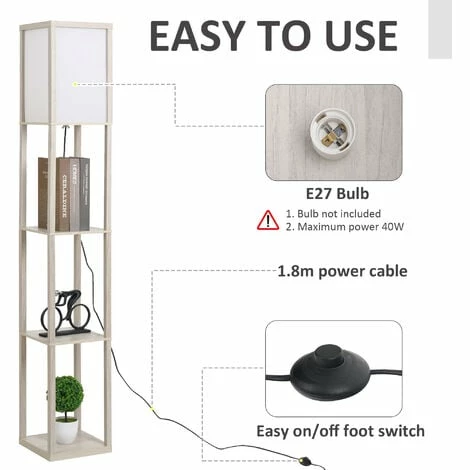 Bring light, beauty and storage into your living room and beyond, thanks to our HOMCOM standing lamp for living room. Formed of three shelves and top light, the standard lamp provides room for storage and display of your decorations and with a white shade to omit a welcoming ambience in your home. Controlled by an easy-to-use foot switch, so you can turn it on and off easily. The floor lamp with table is tough and durable, with a smooth and protective melamine coating to finish.