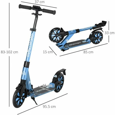● Dimensions: 83-102H x 95.5L x 37Wcm. Folded: 33H x 85L x 37Wcm. Deck: 8H x 45L x 15Wcm. Wheel: Φ200mm