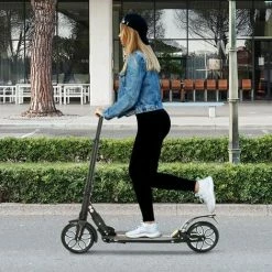 Cut your downtime spent getting around town with this kick scooter from HOMCOM. The aluminum build ensures a frame that is just as durable and reliable as it is lightweight. You’ll find that this commuter scooter has impressive features, there is a height-adjustable handlebar, non-slip footboard, and comfortable grip handles. Safe as it is fun, two 20cm PU tires pair with the shock mitigation system for a smooth and comfortable journey every time.