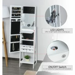 Fusing an elegant design with clever and discreet storage is this jewellery armoire from HOMCOM. On the outside, a full-length mirror is placed for you to get ready everyday, with the angle adjustable to suit you. Inside features 80 earring slots, a bracelet hanger, 12 necklace hooks, 98 ring slots, a fold-out panel, two storage shelves, three boxes and four slide-out drawers, giving you more than enough to keep everything stored. The frame, made from solid and durable MDF, is shaped into an ‘A’ shape to promote balance and stability, with a small bottom shelf for extra holding room to finish.