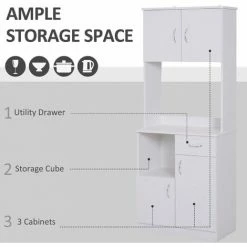 • Features top cupboard with adjustable shelf, two bottom cabinets, open space, drawer and spacious worktop for lots of storage space