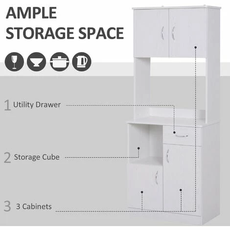 There’s no such thing as enough kitchen storage. Ready to make your decision to maximize their storage with our kitchen storage cabinet? Made of sturdy engineered wood to ensure reinforced strength and stability, it is crafted into a tall 178 cm design, showcasing a top and 2 bottom cabinet with adjustable shelves, alongside a slide-out drawer which is ideal for storing cutlery. Let modern-looking beauty take centre stage in your home with this kitchen dresser from HOMCOM.