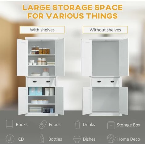 There’s no such thing as enough kitchen storage. Ready to make your decision to maximize their storage with the free standing kitchen units? Made of engineered wood to ensure reinforced strength and stability, this 184cm tall storage cabinet showcasing a top a bottom cabinet with 3 adjustable shelves, alongside a slide-out drawer in the middle which is ideal for storing cutlery. Let modern-looking beauty take centre stage in your home with this kitchen dresser from HOMCOM.