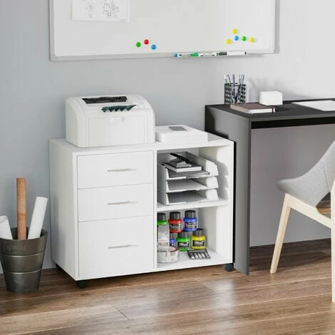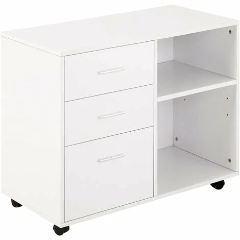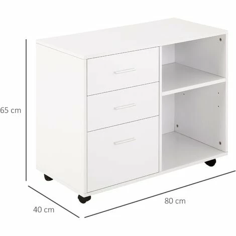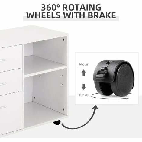 Give your office style and storage all at once with this cabinet from HOMCOM. It features two open compartments and three drawers, giving you plenty of space to keep files, folders and stationary organized. The shelf on the right can be adjusted to suit your needs. Four castor wheels ensure easy movement, with two lockable to keep stationary. It’s made from particle board, ensuring it is tough and durable for everyday use, in a black colour for a sleek addition which sits well-placed anywhere.