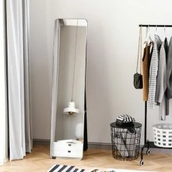 Ensure you’re looking your absolute best every morning with this long mirror from HOMCOM. In fresh and versatile pure color to blend in with your home seamlessly, it is made of solid wood frame and MDF backboard to provide long-lasting use. You can rest the mirror on its foldable frame or hang it securely on the wall where it can do the most good. A must-have addition for every bedroom, living room or hallway.