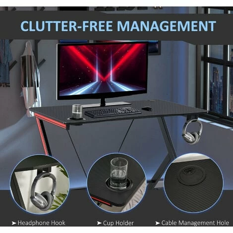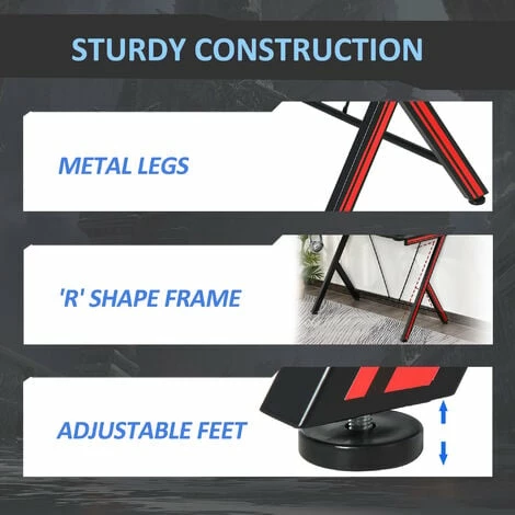 Attention to detail wins games – that’s why this gaming desk from HOMCOM is built to succeed. It’s made with a large table top, which gives you plenty of gaming and working room, spacious enough for holding monitors and other electric accessories. It also has a built-in headphone hook and cup holder for easy-reach convenience. Smooth edges ensure the structure is safe, and it’s finished with adjustable feet so it keeps balanced at all times. A modern and stylish design which will bring joy to your working and gaming space.