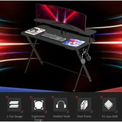 Attention to detail wins games – that’s why this gaming desk from HOMCOM is built to succeed. It features a raised monitor shelf which allows you to see your screen at eye level, preventing stress to the neck when using for prolonged periods. It also has a built-in headphone hook for convenience. The main desktop is large to give you plenty of room for your keyboard, with the smooth edges ensuring safety. A modern and stylish design which will bring joy to your working and gaming space.