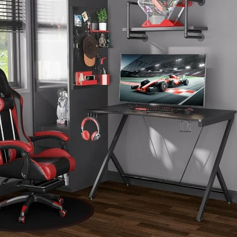 Make your gaming time extra fun with this HOMCOM stylish desk. It features a large main worktop, a cup holder and a headphone hanging hook, giving you everything you need in one spacious spot – meaning you won’t have to move in the midst of a game. The adjustable feet ensures the table is kept level at all times. The perfect piece for your home gaming haven.