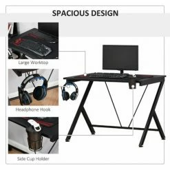 • Design features a large worktop, cup holder and headphone hook for an all-in-one spot