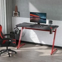 A great gaming setup deserves a pc desk which supports and holds everything you need – this one from HOMCOM is a great choice. Made from steel frame to keep it stable and in ‘Z’ shape to enhance its balance. The large and flat table-top gives plenty of holding room for your various monitors, keyboards and other essentials, with a cup holder, headphone hook and cable management hole for organization. It’s finished with foot pads to protect your floor. A sleek design brings more excitement to you.