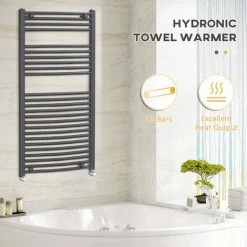 Warm towels as soon as you step out the shower? Who could resist? Turn those thoughts into a reality with this on-wall heated towel rail, from HOMCOM. Made from carbon steel for strength, the three section, 25-bar design gives plenty of room for plenty of towels and robes – suitable for family households. The water-filled design makes circulation even, so the towel ladder efficiently keeps at the same temperature all over. Attach to the wall, connect to central heating and go.