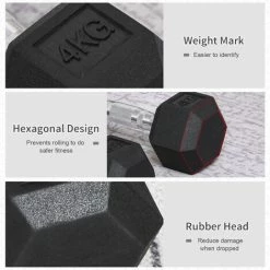 • Rubber covered ends for safety when dropped, hexagon shape stops weight rolling