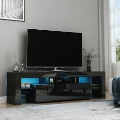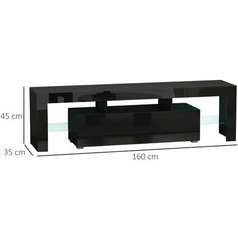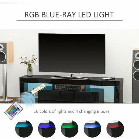 Take your living room into a future dimension with this TV unit from HOMCOM. The design blends a bottom storage cabinet with a long top platform connected in the middle. A lighting panel is placed underneath the top piece – 16 different colours with four different modes for a cool atmosphere in the evenings and nights. Made from a particle and MDF blend, this media console is solid. This media console is totally a perfect gathering piece and anchor for your living space!
