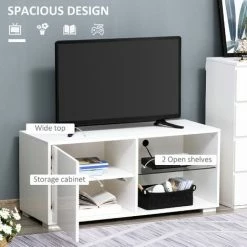 The clean design of this HOMCOM TV unit makes it an all-round winner for every home. Fresh white in finish, it’s crafted into a boxy rectangular shape, meaning it can effortlessly pair with other furniture. This tv bench features a cabinet on the left for off-display storage, with two open glass shelves on the right, which is a must for any media devices and consoles. There is a cut-out hole on the back to feed wires through, and the flat table-top offers extra holding room.