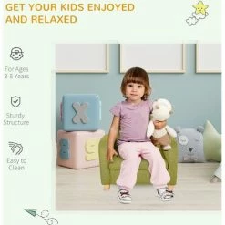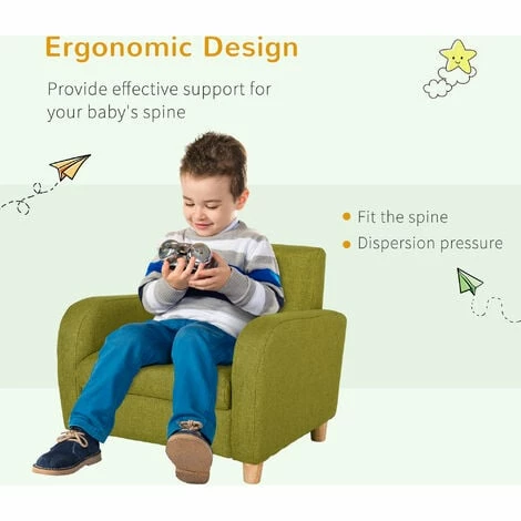 This armchair from HOMCOM is made for all the cool kids out there. Using solid wood for the frame, it’s crafted into a wide design, where the mid-rise back and high armrests create a relaxed look and feel. The kids chair is filled with foam and is fitted with a thick cushion for extra comfort, with soft and rounded edges for safety. It’s wrapped in linen upholstery which is smooth and easy to clean, with four stump feet to keep the balance and anti-slip feet to protect the floor.