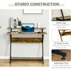 An all-rounder desk, made to support you for whatever you do – this HOMCOM desk will ensure you get the most out of your space. Made from metal, the sturdy frame is fully supportive, with adjustable feet for continual balance – giving you peace of mind as you concentrate. Compact design occupies less space and 2-tier shelf gives you enough room for working, studying or gaming. Comes complete with a handy top and bottom shelf.