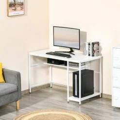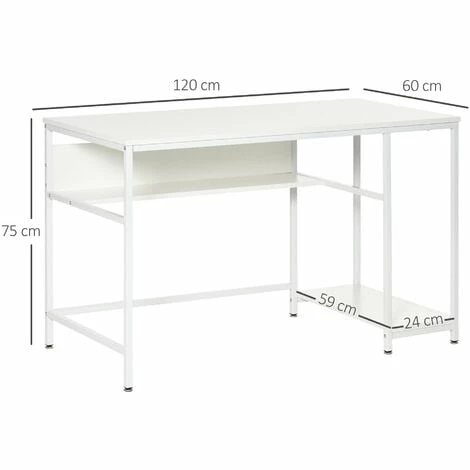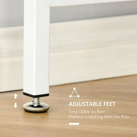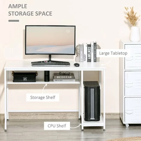 Make room for working anywhere with this desk from HOMCOM. Comes with a wide table top, giving you lots of room to work, as well as holding a monitor, laptop, keyboard and more. Features middle shelf for holding all essentials close to hand, with the bottom side shelf your CPU. Steel legs for full support, finished with adjustable feet to keep it balanced.