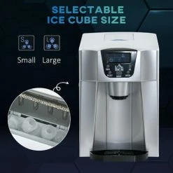 Quench your thirst with a nice cool drink, anytime. Do it with this water dispenser and ice maker duo. 3 litre size produces up to nine cubes every 10 minutes/12kg of ice per day, making it suitable for personal use. It’s fitted with a spout which dispenses water and ice together – doing all the work for you. Choose between small or large ice pieces to suit what you want. The LCD screen makes it easy to control and change the settings, whenever. Simply plug in and go.