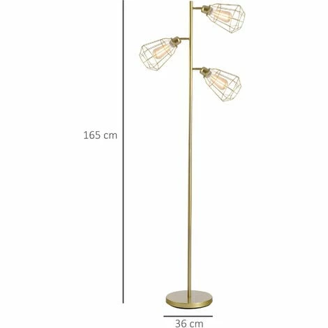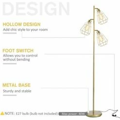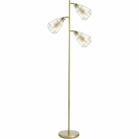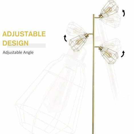 Bring beautiful industrial styling into your home and beyond with this floor lamp from HOMCOM. Using steel for the tall and slimline frame, it features three lights, all protected by a large birdcage shell for safety. Each light can be moved up/down and left/right allowing you to illuminate towards any position needed. The base is round and wide to keep the structure upright, and it is finished with a foot switch to turn it on and off easily.