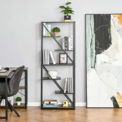 Functional and elegant, this ladder shelf is the perfect geometric decoration for any modern space. The unique asymmetric design and combination of rustic wood and dark steel make it a great fit in industrial and modern space. This shelf unit has 6 open shelves that offer ample storage space and supports up to 40 kilos. Bet on functionality with the original shelf!