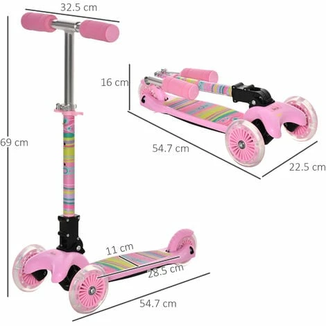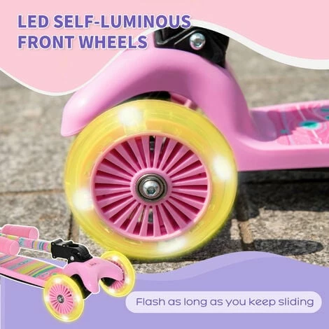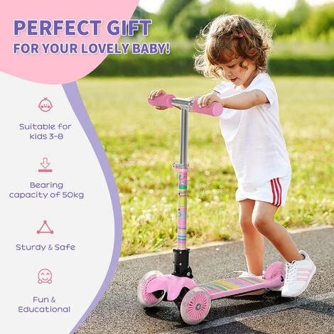 Make days out with the kids extra fun with this HOMCOM scooter. The front wheel lights up when riding, adding to the joy of scootering. With an adjustable handlebar and a durable metal frame, this scooter is here for the long term – as your child grows, so will the scooter. It’s wrapped with foam so they can comfortably hold on, whilst the wide foot board keeps them balanced. They’ll come to a swift stop, thanks to the rear brake