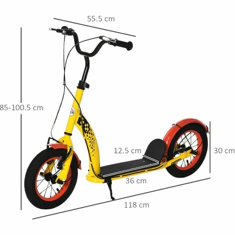 Make outdoors extra fun with this kids HOMCOM scooter. It has adjustable handlebars that can grow with your child – they come wrapped for an easier grip. A wide foot deck keeps them balanced, so they’ll be confident when scootering and they can stop at any time, thanks to the front and rear brakes. Whether it’s the school run, around the park or up and down they street, the inflatable wheels ensure their ride is always safe and smooth.