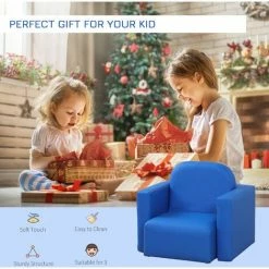 HOMCOM 2 In 1 Kids Armchair Sofa Bed Fold Out Padded Wood Frame Bedroom Blue