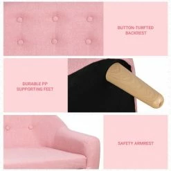 Kids sit comfortably with this kids armchair from HOMCOM. Frame made from wood for a tough structure, it’s fitted with a padded seat for comfort, wrapped in linen-look upholstery for style and smoothness-to-the-skin. High back and armrests for support as they lean back, it’s finished with four wooden legs for support.