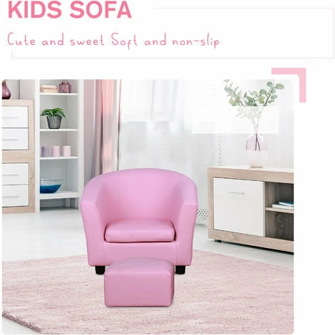 HOMCOM 2 PCS Kids Sofa And Ottoman Child Size Armchair For Girls Age 3 -5 Pink
