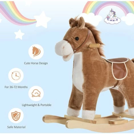Give your child endless adventure and fun with this rocking horse from HOMCOM. Using solid metal for the main frame, moulded into large design and covered in soft plush fabric. It is fitted with a flat seat, a rein and two handlebars for your child to hold on safely. With the squeeze of the ear button, the mouth and tail moves and plays sounds, making it fun and exciting. It’s finished with a solid wood base for a smooth gliding motion forwards and backwards.
