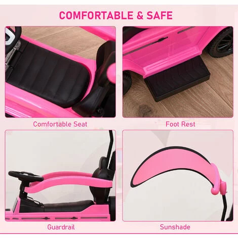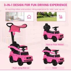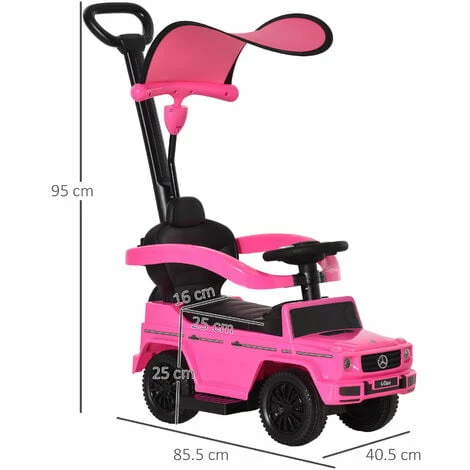 Your search for a fun sliding car stops here. Give children aged between 12-36 months this impressive piece from HOMCOM. Officially licensed Mercedes design adds to the extra fun. Features a moving steering wheel and horn. The seat with backrest is comfortable supportive, with the outer guardrail ensuring safety. Comes complete with a top canopy so they don’t get burnt by the sun whilst cruising outdoors. Three-in-one design: a walker, slider and push ride-on.