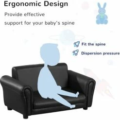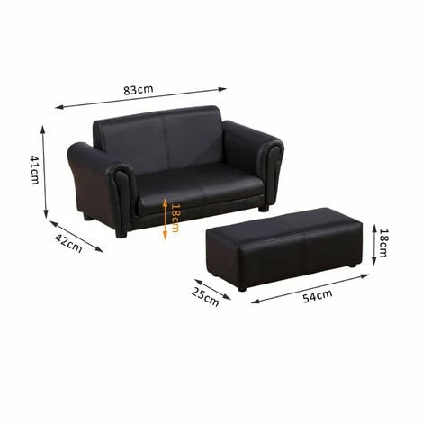 • Net Weight: 9kg • Sofa Weight Capacity: 60kg • Footstool Weight Capacity: 40kg • Sofa Dimension: 83L x 42W x 41H cm • Stool Dimension: 54L x 25W x 18H cm • Seat Size: 29W x 56D cm • Seat Height: 18cm • Suitable Age: 3-5 years old • Certification: BS5852 • Custom Label: 310-006BK