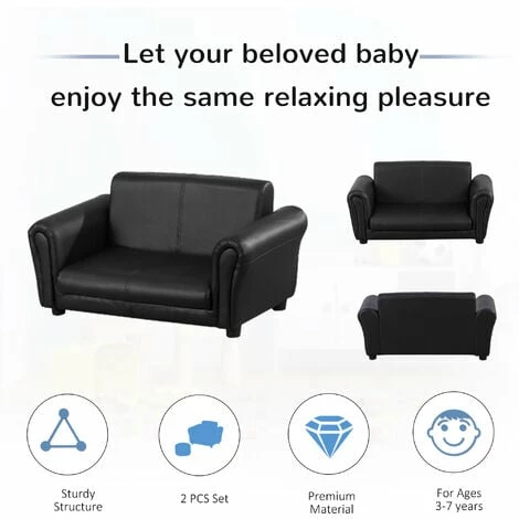 Why must adults always enjoy all the fun? The HOMCOM children’s 2 seater sofa set allows your children to enjoy the same relaxation, but the size is small and suitable for children! It features 2 seater, two-side armrest and a footstool, providing your children with ultimate comfort and security. The solid wood structure and soft padding can support a weight of 60 kg(sofa). Recommended for children from 3 to 5 years old. It is also a great place for your children and their friends to read, play and watch TV together. An ideal gift for your little ones in their childhood and will be a perfect decoration in the nursery or playroom.