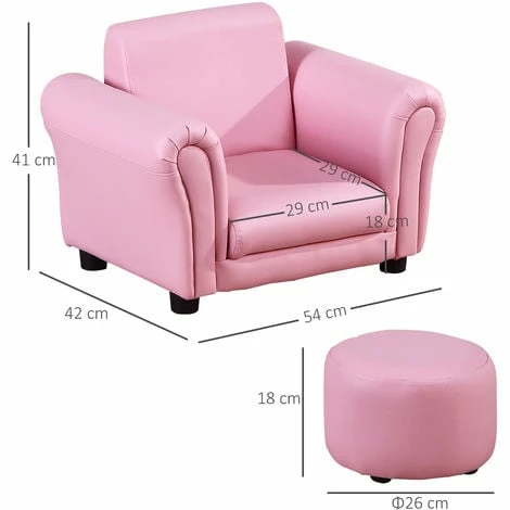 Why must adults always enjoy all the fun? The HOMCOM children’s sofa set allows your children to enjoy the same relaxation, but the size is small and suitable for children! It features an armchair of two-side armrest and a footstool, providing your children with ultimate comfort and security. The solid wood structure and soft padding can support a weight of 50 kg(sofa). Recommended for children from 3 to 7 years old. An ideal gift for your little ones in their childhood and will be a perfect decoration in the nursery or playroom.