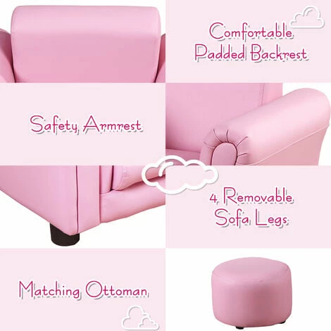 HOMCOM 2 PCS Kids Sofa And Ottoman Child Size Armchair For Girls Age 3 -5 Pink