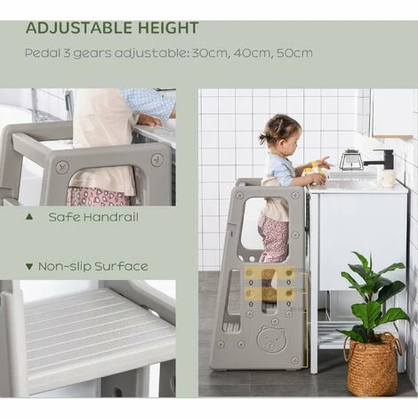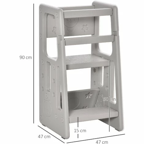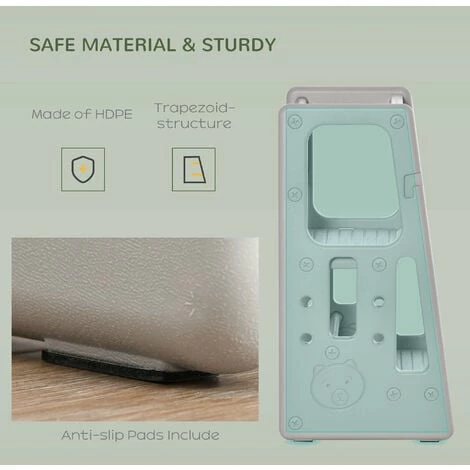 HOMCOM Kids Step Stool helps cultivate your little one’s good habits of independence! The standing tower is pretty useful and perfectly matches your kids. It is suitable for many occasions such as the kitchen, washroom, and dining room, enabling your children to brush their teeth, wash their faces and help in the kitchen. Made of HDPE material, the step stool for children is non-toxic and has no unpleasant odor. Trapezoid structure enhances the stability and balance of this toddler stool.
