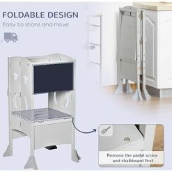 HOMCOM 2 In 1 Kids Kitchen Step Stool Helper With Safety Rail Learning Tower