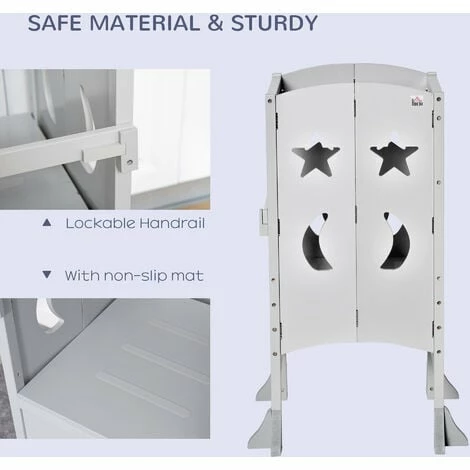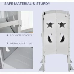 Make it easier for your child to reach the sink, brush their teeth, wash their hands and use the counter with this step stool from HOMCOM. They’ll stay safe when using, thanks to the guardrail and handrail adding support. Getting mess on the stool isn’t a problem – simply wipe the mess away