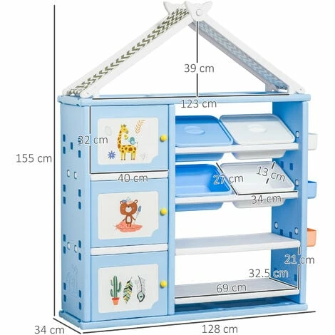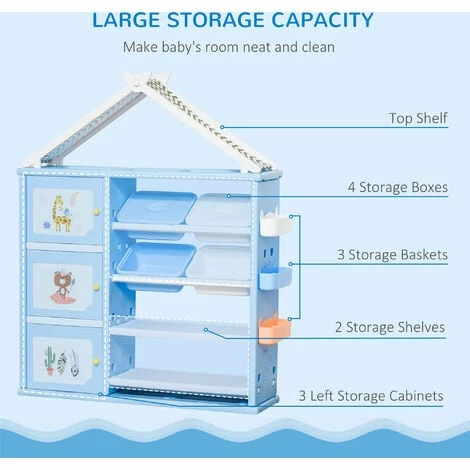 Teach them to tidy their room, and keep it that way! Give them this storage unit from HOMCOM. The cute and simple animal design is something children will love and respect. Features three separate cupboards, a roof shelf, four cubby baskets and two bottom shelves