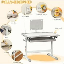 ● Includes a pen box, drawer, reading board, cup holder, two pen lots and table lamp