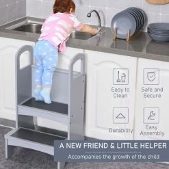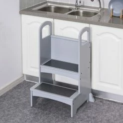 Elevate your child you new and exciting heights with this step from HOMCOM. It’s suitable for use in the kitchen, bedroom and bathroom, helping them when brushing their teeth, washing hands and with other tasks around the house. The wooden structure is solid, reinforced with MDF for extra strength. It is fitted with handles so they can hold on whilst they move up and down the two steps. The non-slip panels on both steps ensure extra safety. A great way to build their confidence and help them develop their own sense of independence. Recommended for ages 3-8 years.