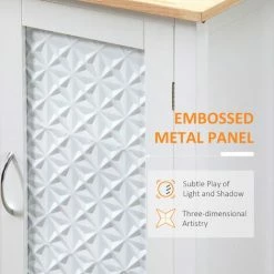 ● The embossed door panel creates visual depth through the subtle play of light and shadow