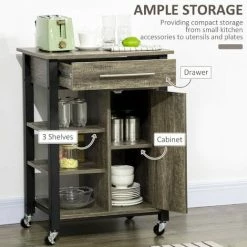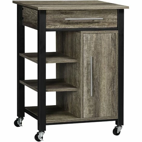 This serving cart is an ideal option for your home parties. Complete with wheels, this cart can roll from room to room for convenience. A handy drawer, a concealed cabinet, and 3-tier open shelf provide ample storage for your kitchen and dining essentials. Bring a functional helper to your kitchen space with this kitchen cart.