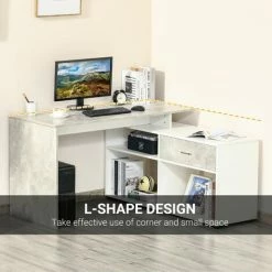 If, feeling like you never have enough work space, then fix it. Go for this ‘L’ desk from HOMCOM. A design which not only slots into corner spots easier, it combines a standard desk with a side storage cabinet – drawer and three open compartments. Made from particle board, this computer table is pretty sturdy, so it can be used everyday – finished in a beautiful and different grey and white colourway.