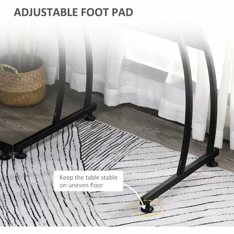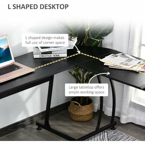 Let simple and expansive style make your working times run as smoothly as possible – opt for this black desk from HOMCOM. Its ‘L’ shaped corner design gives you maximum working space, fitting into most areas with ease. Made from steel, the frame is tough and stable, with thick particle board worktops which ensure a solid work area. A sleek piece which will see you through the long days and nights with ease.