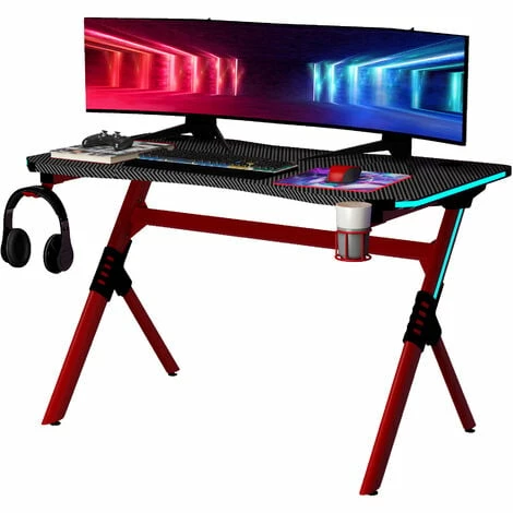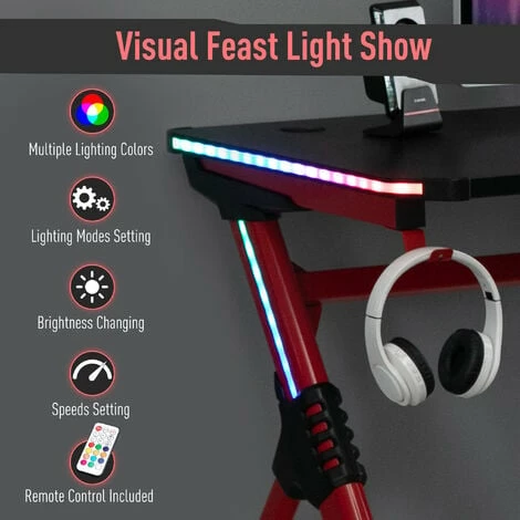 A snazzy upgrade for your gaming room comes in the form of this table from HOMCOM. It comes with LED light on both sides to create a fun atmosphere in the dark – easily controlled by the included remote. The worktop is large for plenty of playing/working room. A steel frame for a supportive core structure, comes with anti-slip feet to protect your floor. Finished with a handy cup holder and headphone hook.