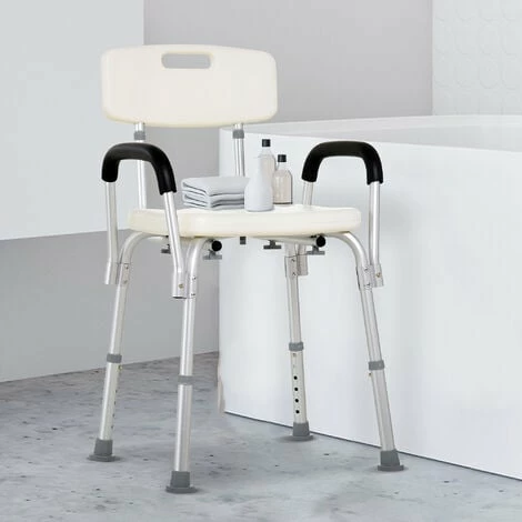 Simple, sturdy, and multifunctional, the HOMCOM shower and bath bench is ideal for those who need extra help in the shower or struggle with limited mobility. It features a sturdy aluminum frame, padded armrests, and a high-density polyethylene seat and backrest to provide extra security and comfort. It also includes adjustable legs for required height and non-slip rubber safety tips for additional stability.