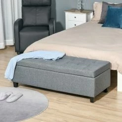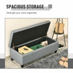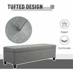 Make home storage effortlessly easy and elegant with this ottoman bench from HOMCOM. Using wood for the frame to handle up to 120kg, it is fitted with foam on the hinged lid for comfort when sitting. There is lots of room inside for plenty of storage and tufting on the top gives it a chic look. It is finished with four feet for balance. A discreet way to keep your home clean and tidy.