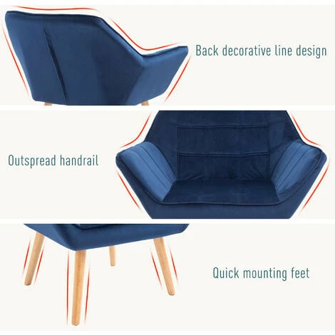Let serious sophistication sit in your home with this luxe single chair from HOMCOM. An iron frame to keep the shape perfectly in check, it is formed into a wide and relaxed design, where the arms fall outwards and the back slightly angled, with padding all over to ensure comfort. Velvet-feel upholstery is wrapped all around the frame for a beautiful look. Not only a piece to love sitting in, but one to love looking at too.